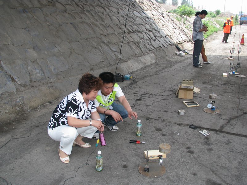 由于荷載試驗必須用標(biāo)準(zhǔn)重量的汽車進(jìn)行加載才能測得詳細(xì)準(zhǔn)確的數(shù)據(jù),需在檢測期間斷交。為此公司與下花園交通局、交警隊聯(lián)系溝通,得到他們的大力配合,檢測時間安排在車流量較小的中午進(jìn)行。