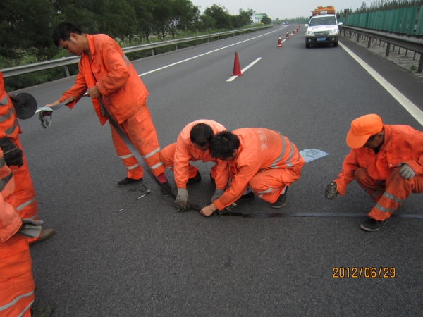 今年以來,工程部在全線灌縫工作中采用了新工藝、新方法配合施工,在原有對裂縫進行開槽灌縫的基礎上增加了對細小裂縫不開槽直接采用裂縫貼處理的方法,此方法施工簡便,加快了施工進度,新材料提升預防性養(yǎng)護水平(工程養(yǎng)護部)