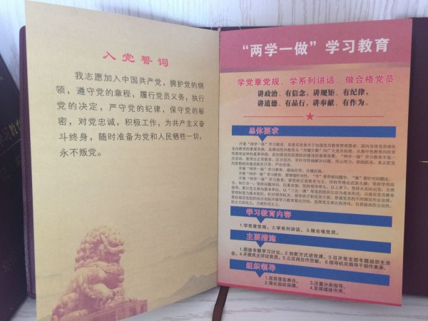 學習教育筆記本設計精美、內(nèi)容全面,不僅有“兩學一做”學習教育的專門字樣,內(nèi)頁開篇中還附有入黨誓詞、“兩學一做”學習教育解析、中國共產(chǎn)黨廉潔自律準則以及中國共產(chǎn)黨的六大紀律,同時在每頁的底端還附有《中國共產(chǎn)黨章程》、《中國共產(chǎn)黨紀律處分條例》以及習近平總書記系列講話的重要章節(jié)。