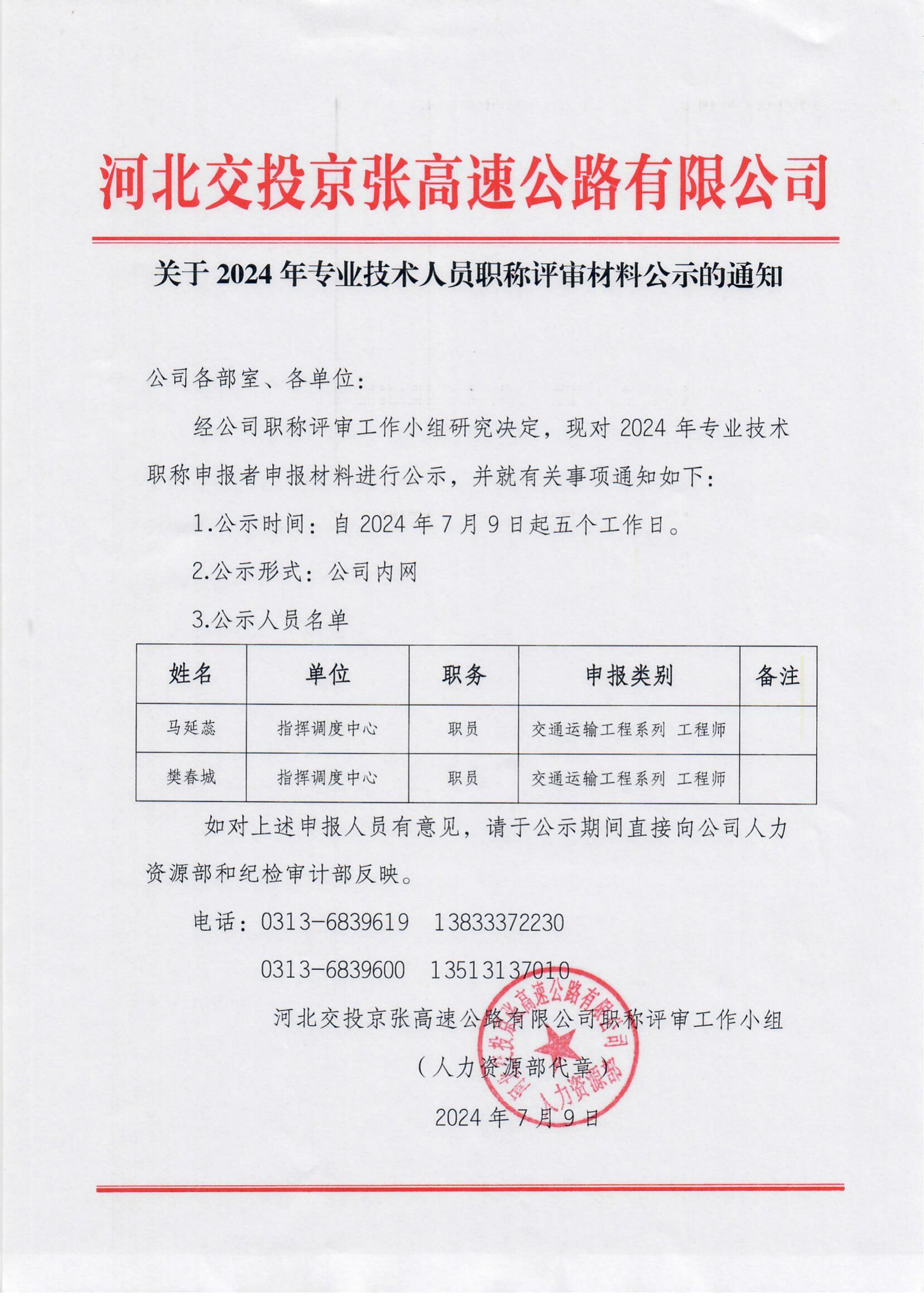 關(guān)于2024年專(zhuān)業(yè)技術(shù)人員職稱(chēng)評(píng)審材料公示的通知