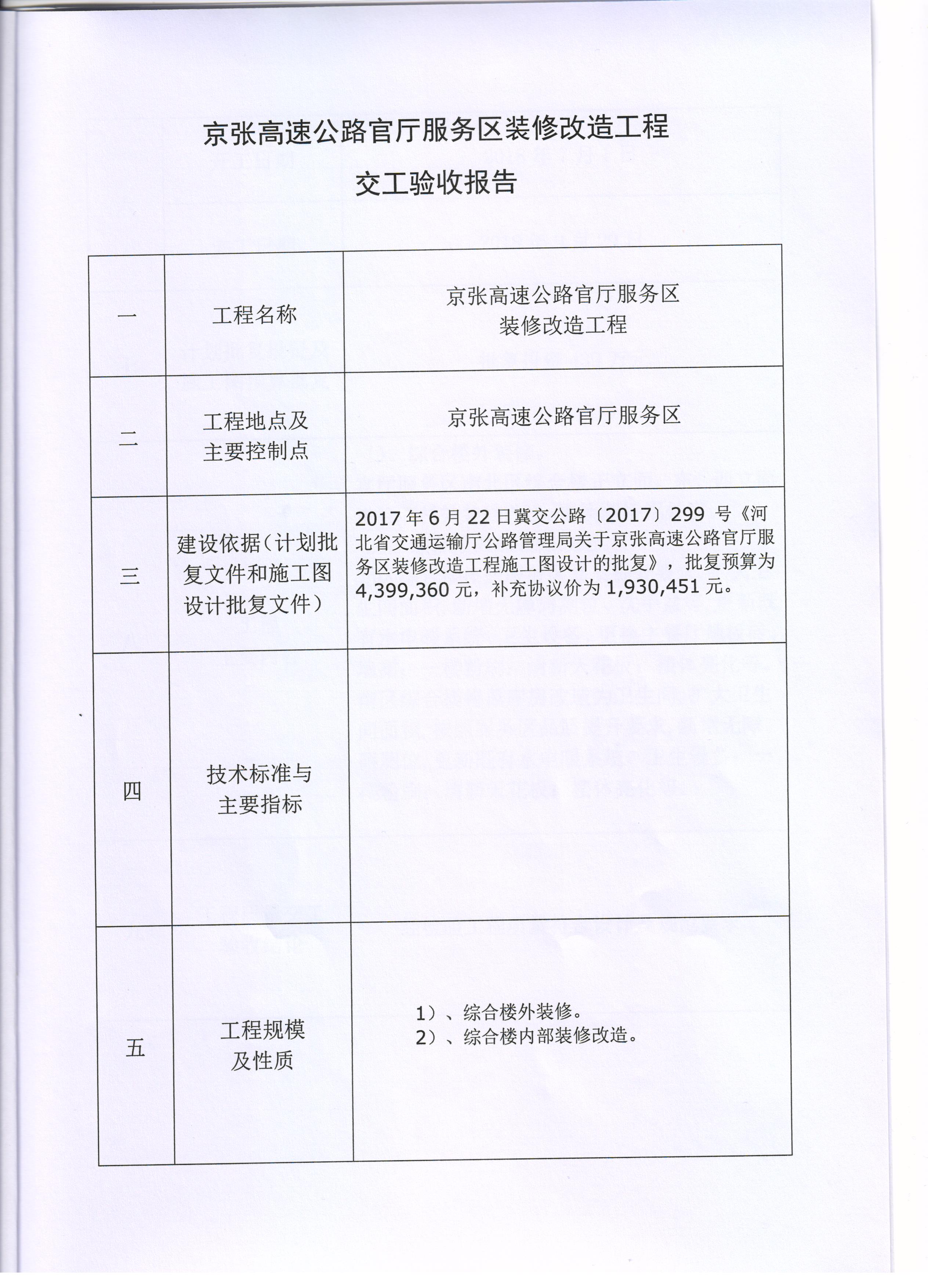 京張高速公路官廳服務(wù)區(qū)裝修改造工程交工驗(yàn)收報告